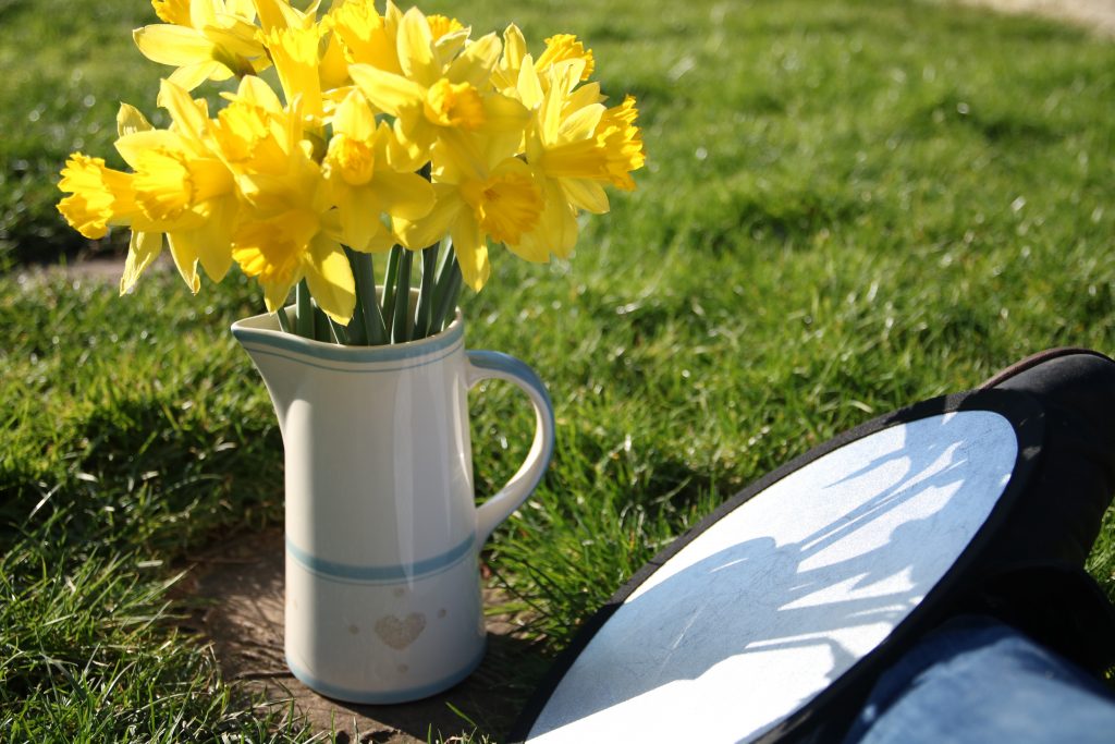 As it happens, I quite liked the daffodil shadows on the reflector. Here’s another shot so you can see what I mean.